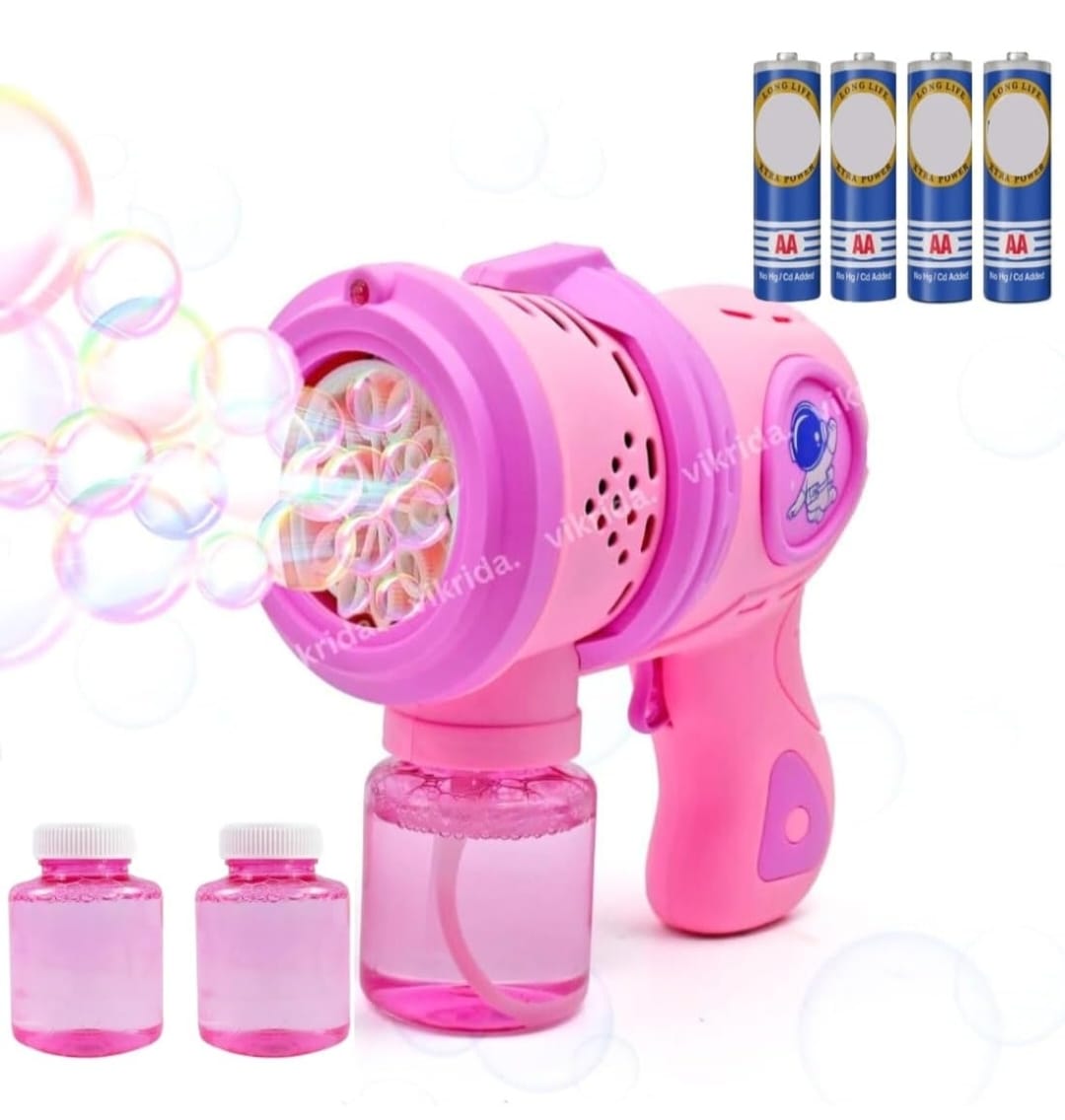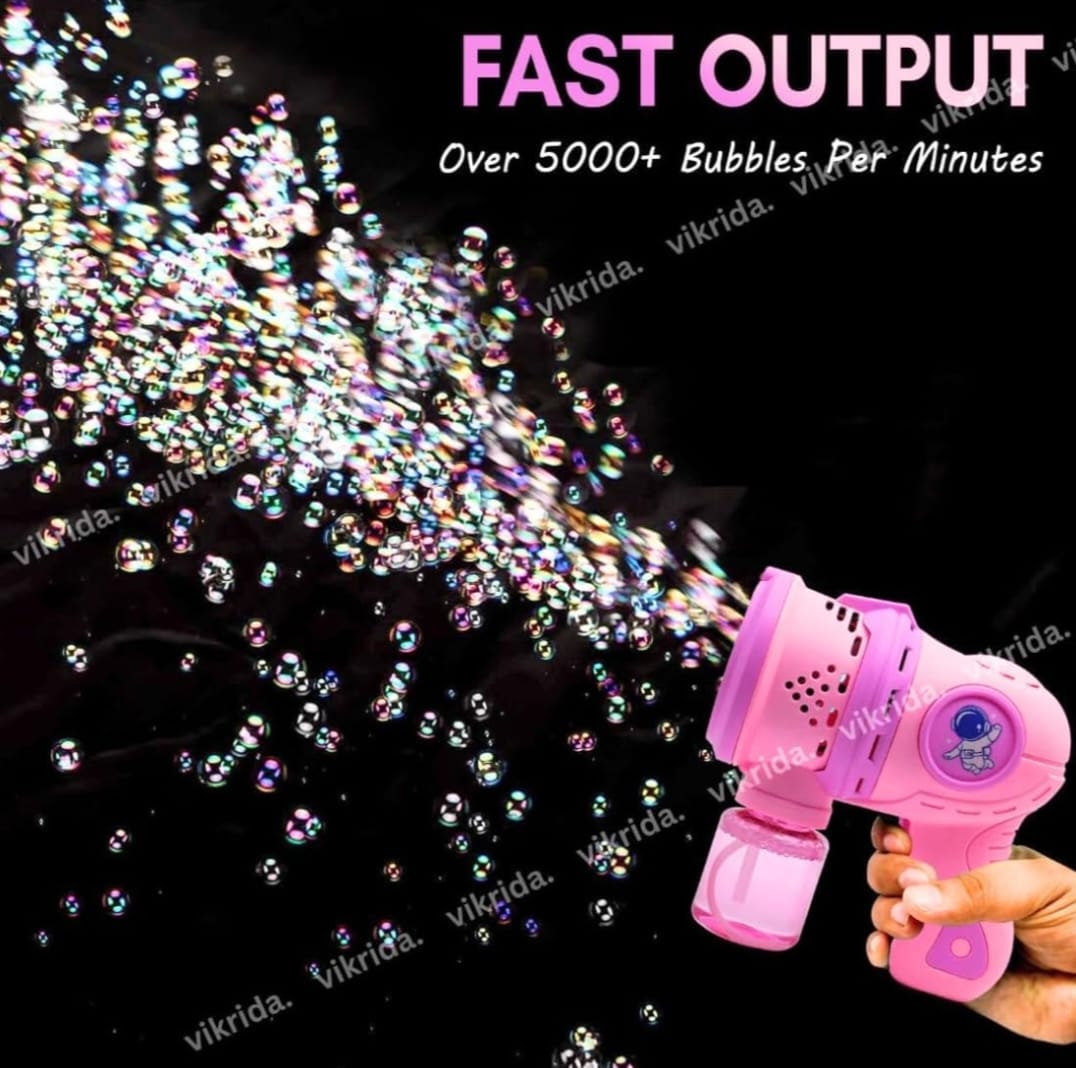 Rechargable Space Bubble Gun Machine Toy with Light & Bubble Bottle for Toddlers | 5000+ Bubbles Per Minutes | Leak-Proof | Fully Automatic| Age 3+ | Outdoor Indoor | Best Gift for Kids | Pink