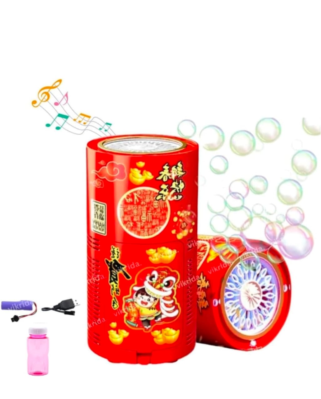 Rechargeable electric bubble machine uses a lithium battery and comes with exquisite Spring Festival theme stickers to add a festive atmosphere for the Spring Festival to you.