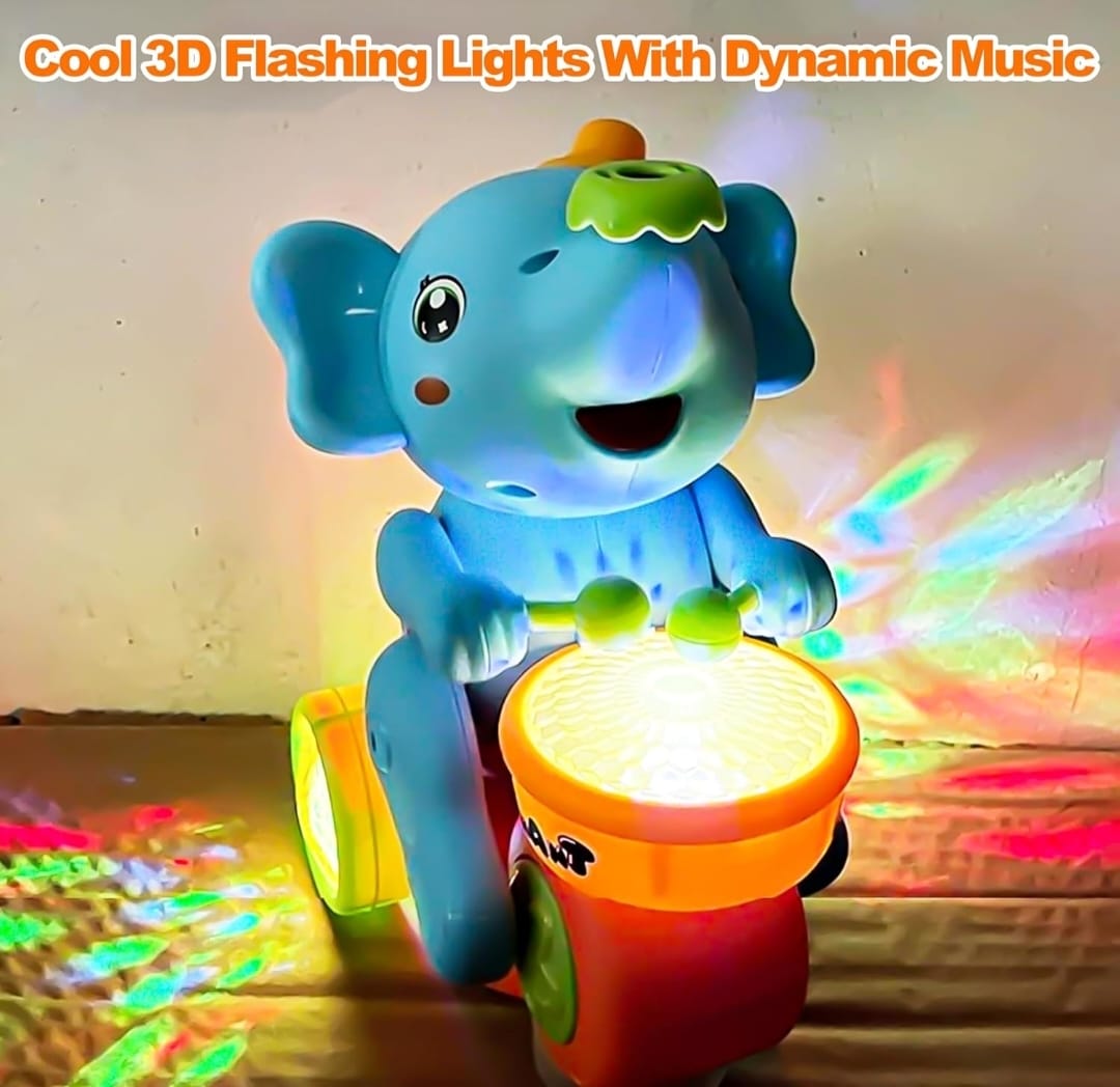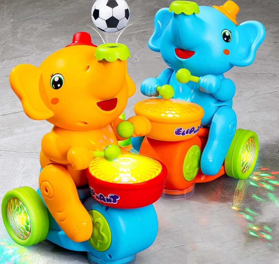 Drummer Elephant Levitating Ball Toy for Kids with Flashing LED Lights and Music – Battery Operated Bump and Go Beating Drum Toy – Color As Per Stock