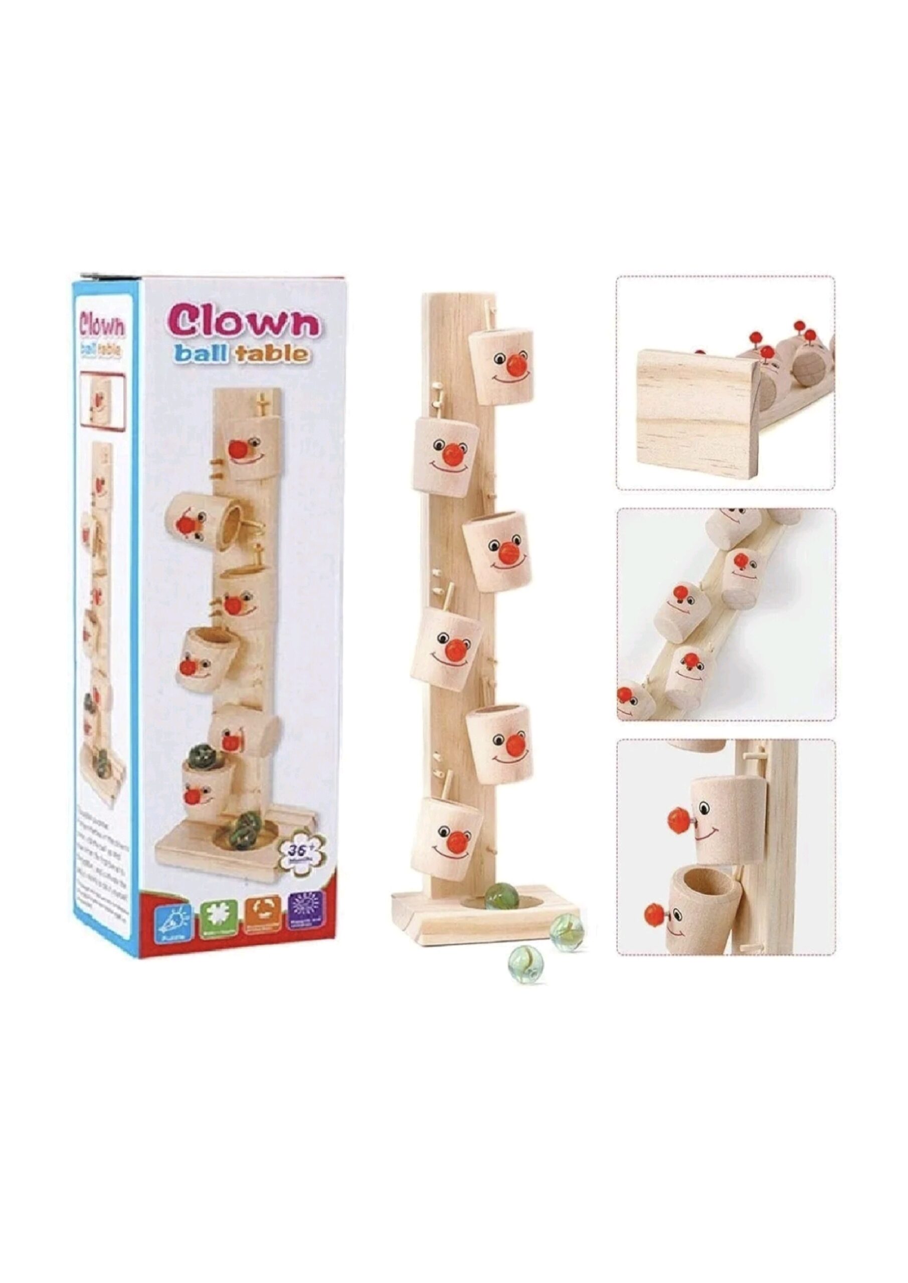 wooden toys for kids clown cup marbles children’s toys montessori wooden tree marble ball run track game for boys and girls-Multi color,Pack of 1 set